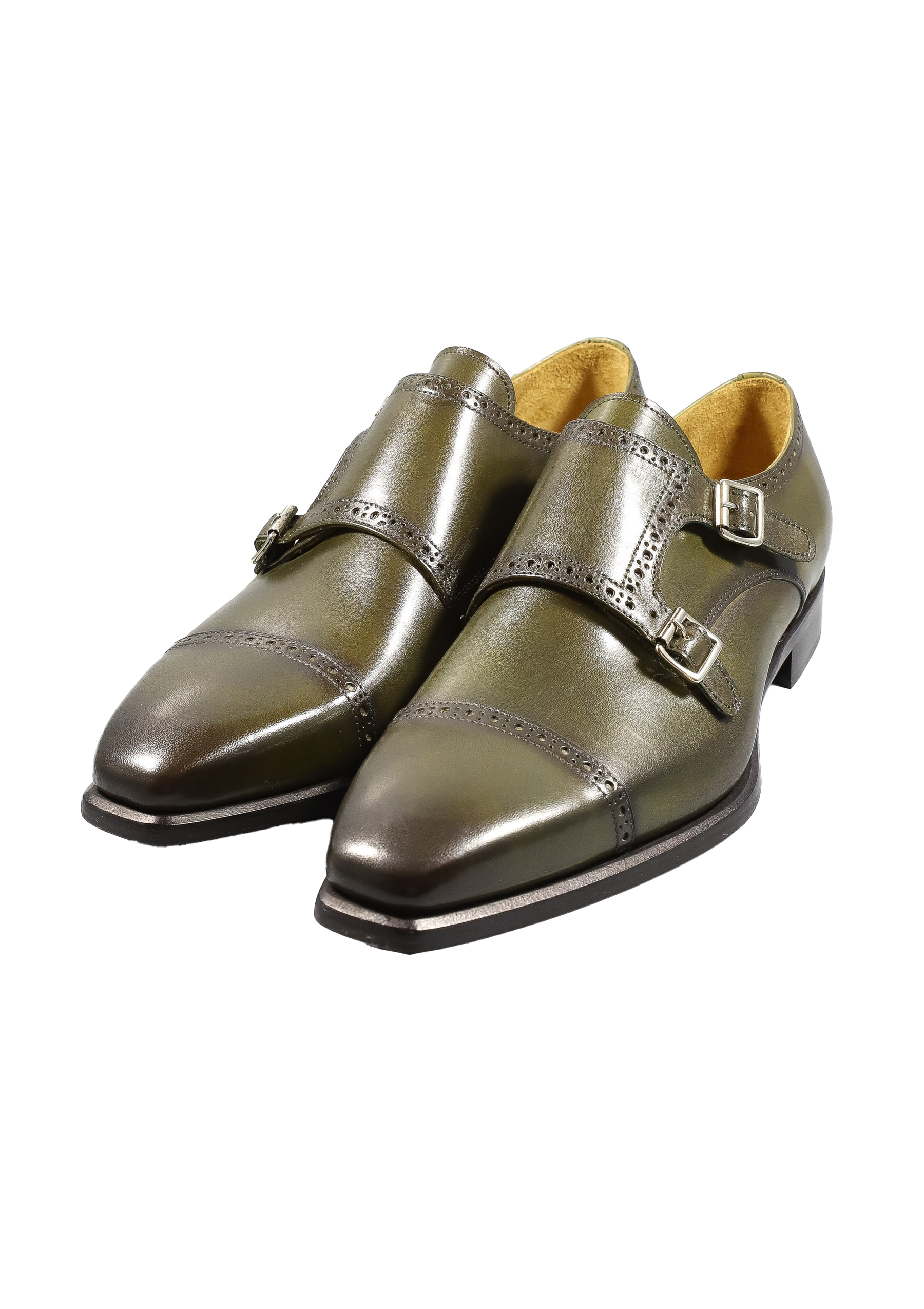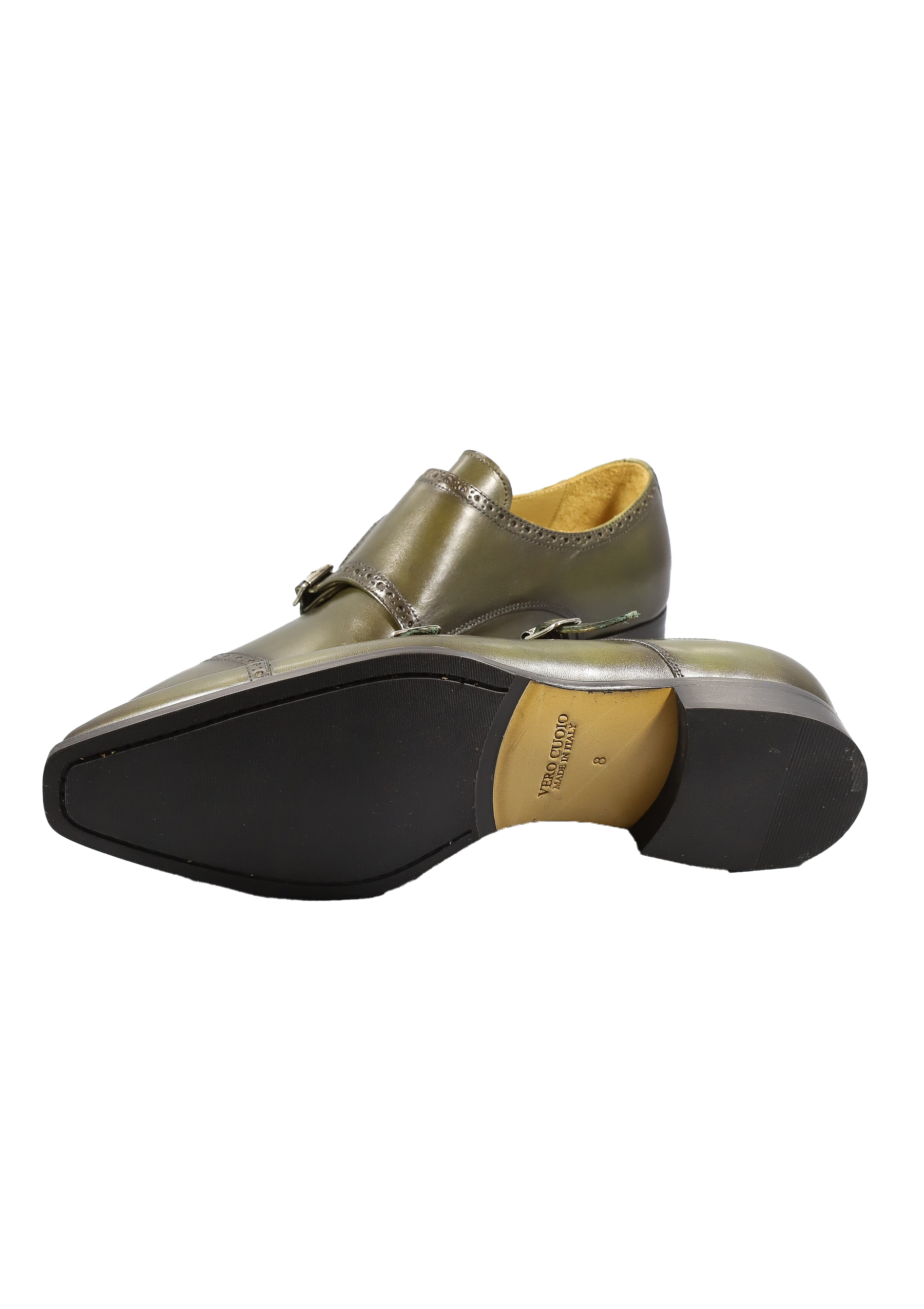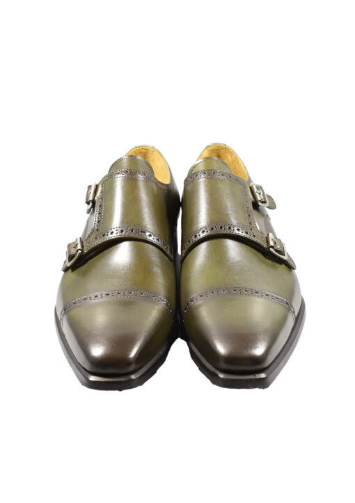 Original Italienische Elegante Schuhe Grün Leder Herren A614