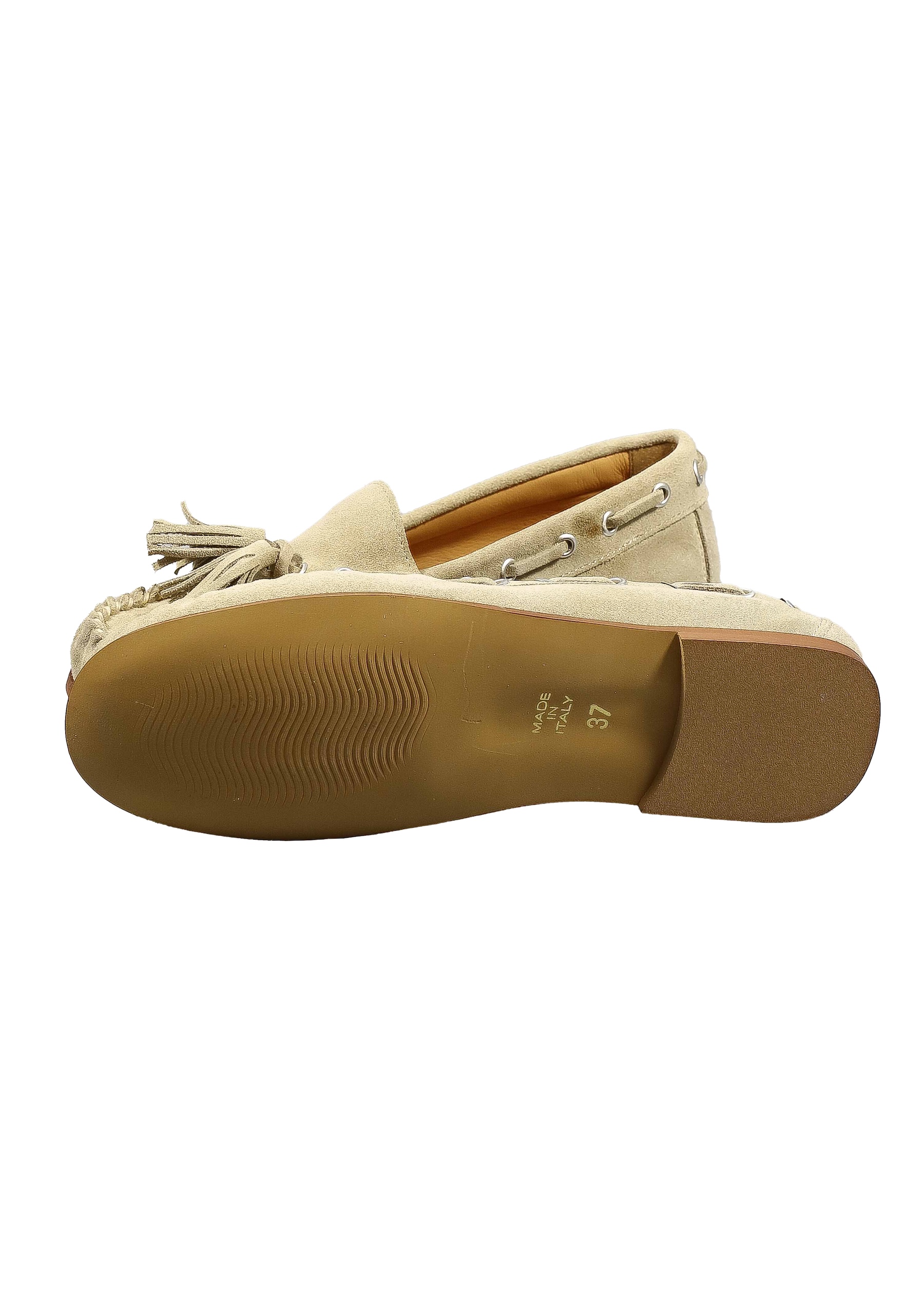 Original Italienische Mokassin Beige Leder Damen B703