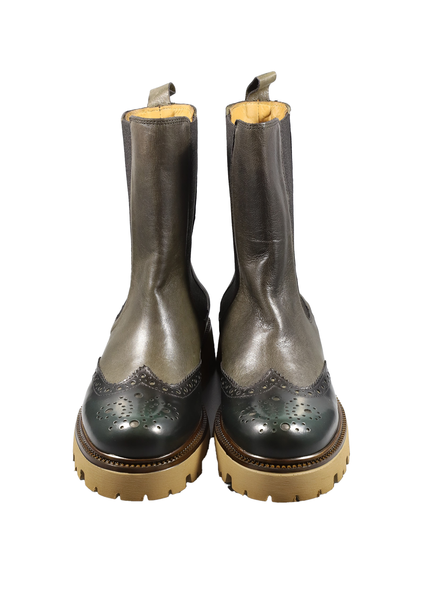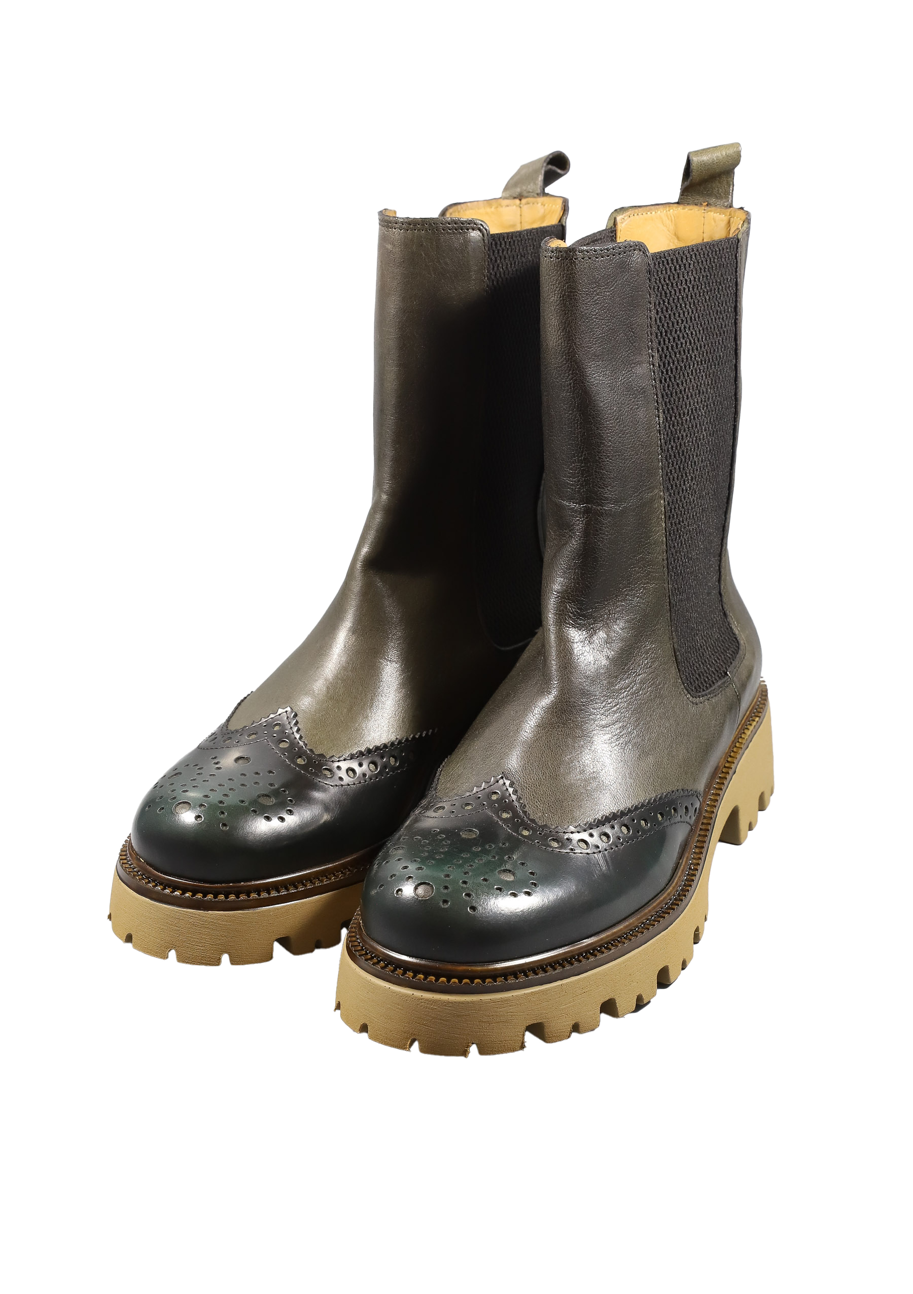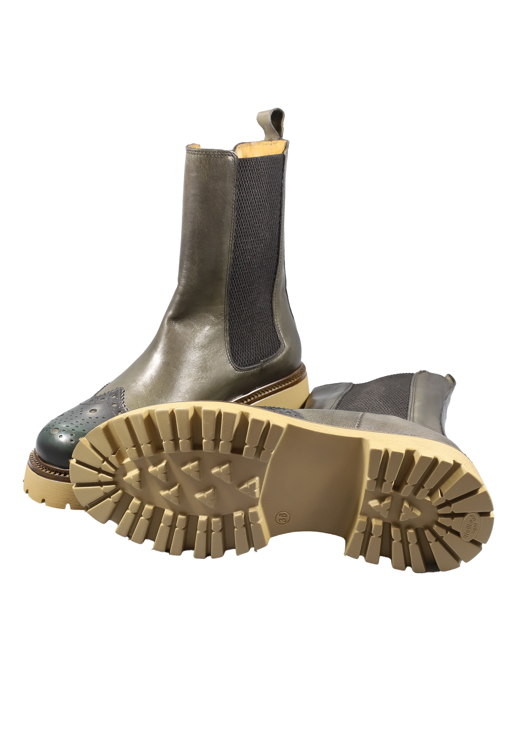 Original Italienische Stiefeletten Olivegrün Leder Damen B630