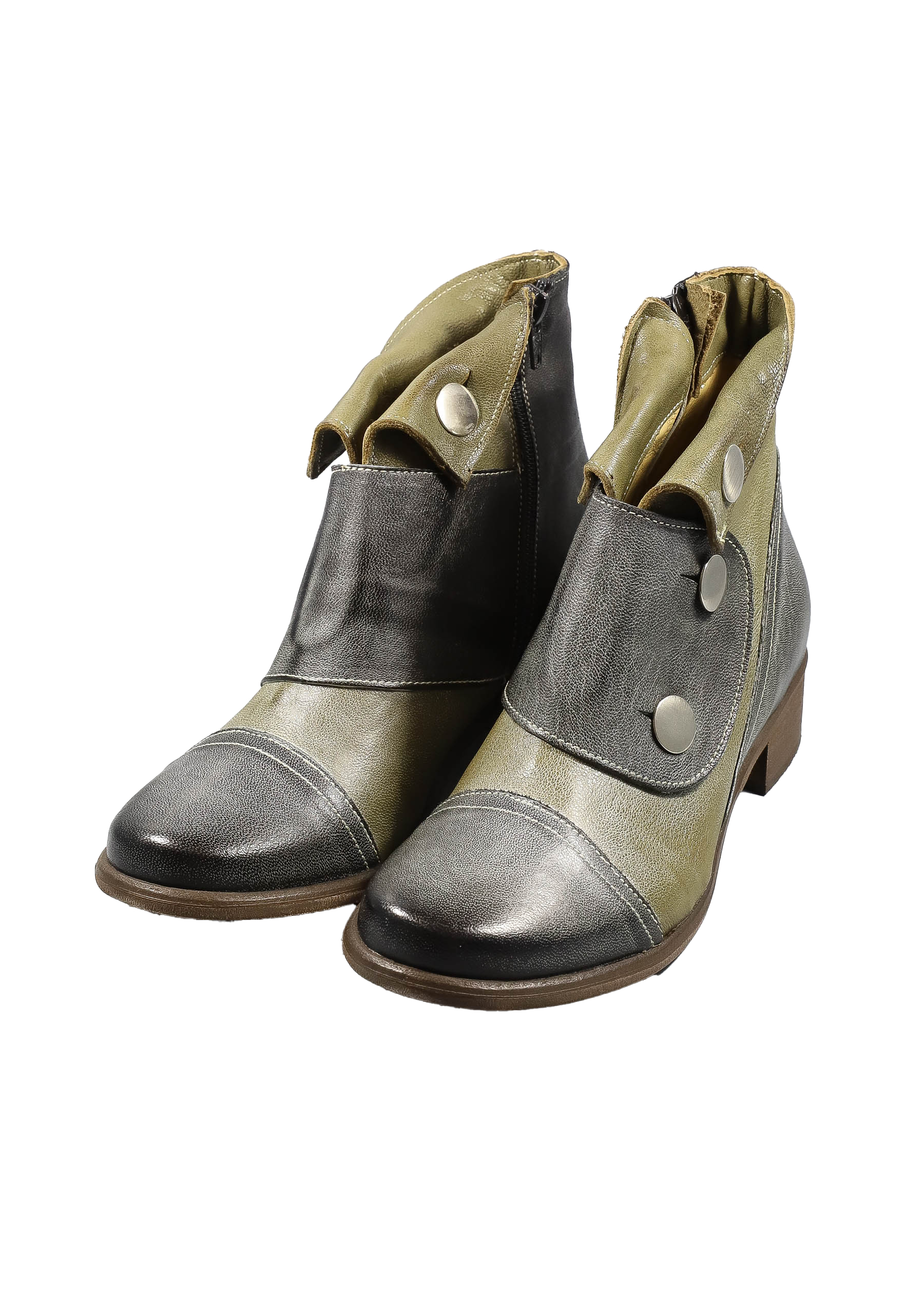 Original Italienische Stiefeletten Schwarz/Grün Leder Damen B607